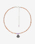 Winzige, nude-farbene, geschliffene Sonnensteine sollen das Gemüt besänftigen und Zuversicht schenken. Mauvefarbene Achatperlen sorgen für einen kleinen Farbtupfer.