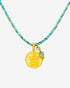 Lakshmi Anhänger und Aqua Chalcedon wurden an eine hübsche, geflochtene Schnur gehängt – eine unkomplizierte Kette, die in der Länge variabel ist von eng am Hals bis zum Dekolleté.