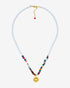 An der längenverstellbaren Kette mit vielen bunten Edelsteinen und weißen Plättchen Perlen hängt ein vergoldeter Auge Anhänger. Was für ein Wächter!!!